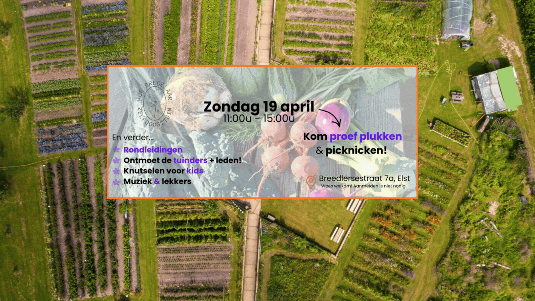 Wil jij genieten van verse, biologische en lokaal geteelde groenten, fruit, kruiden en eetbare bloemen? Sluit je dan aan als oogstdeelnemer bij Zelfoogsttuin Hof Bredelaar.